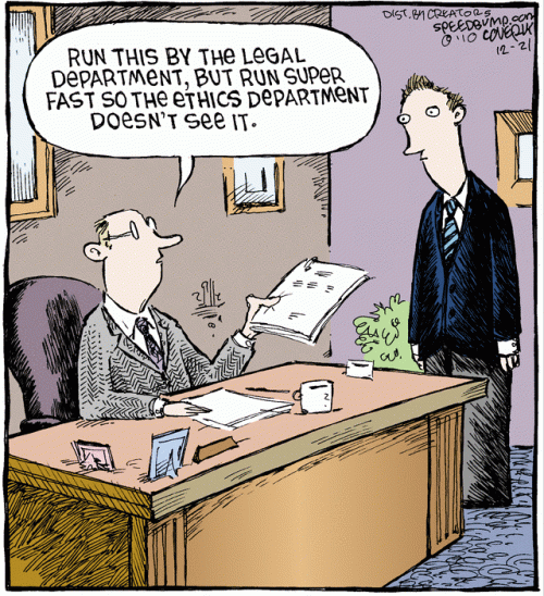 In this inevitable gap between what’s legal and what’s ethical we can pack a significant percentage of the best comics about business. Like this one from a couple of days ago.