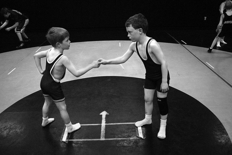 In the 8th grade I finished second in my country county in wrestling (in the 99-pounds-and-under category). In the semi-final match, the referee neglected to invite me and my adversary to shake hands before the match began. He just signaled for the match to start. But since a handshake was the usual protocol, the other kid reached out to shake my hand. I grabbed his hand, performed a standard wrestling move (I don’t remember much of the jargon now), and took him to the ground. It was perfectly legal, and I was a total 99-pound asshole.